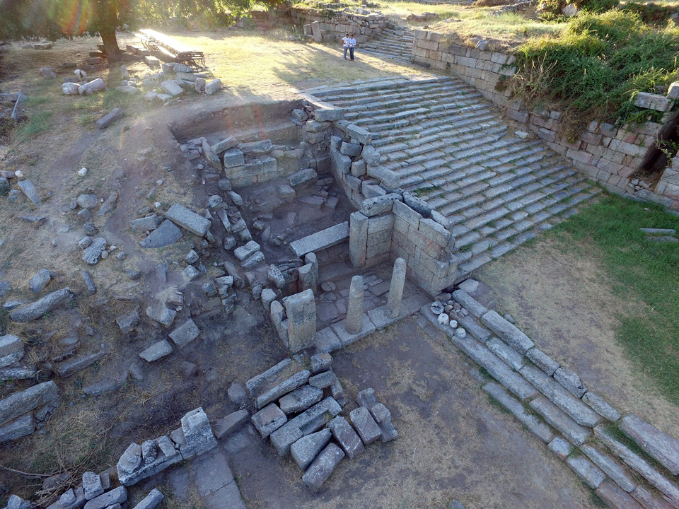 Période Hékatomnide. Grand projet de monumentalisation : Andron B et Stoa Nord, forteresse de l’acropole, temple de Zeus, Oikoi, les Propylées Sud, etc.